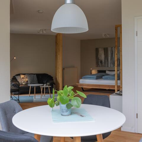 Unsere Ferienwohnung besticht durch ihre offene und zugleich gemütliche Raumgestaltung. Ein großzügiger Wohnraum vereint alles, was du für einen entspannten Aufenthalt brauchst: