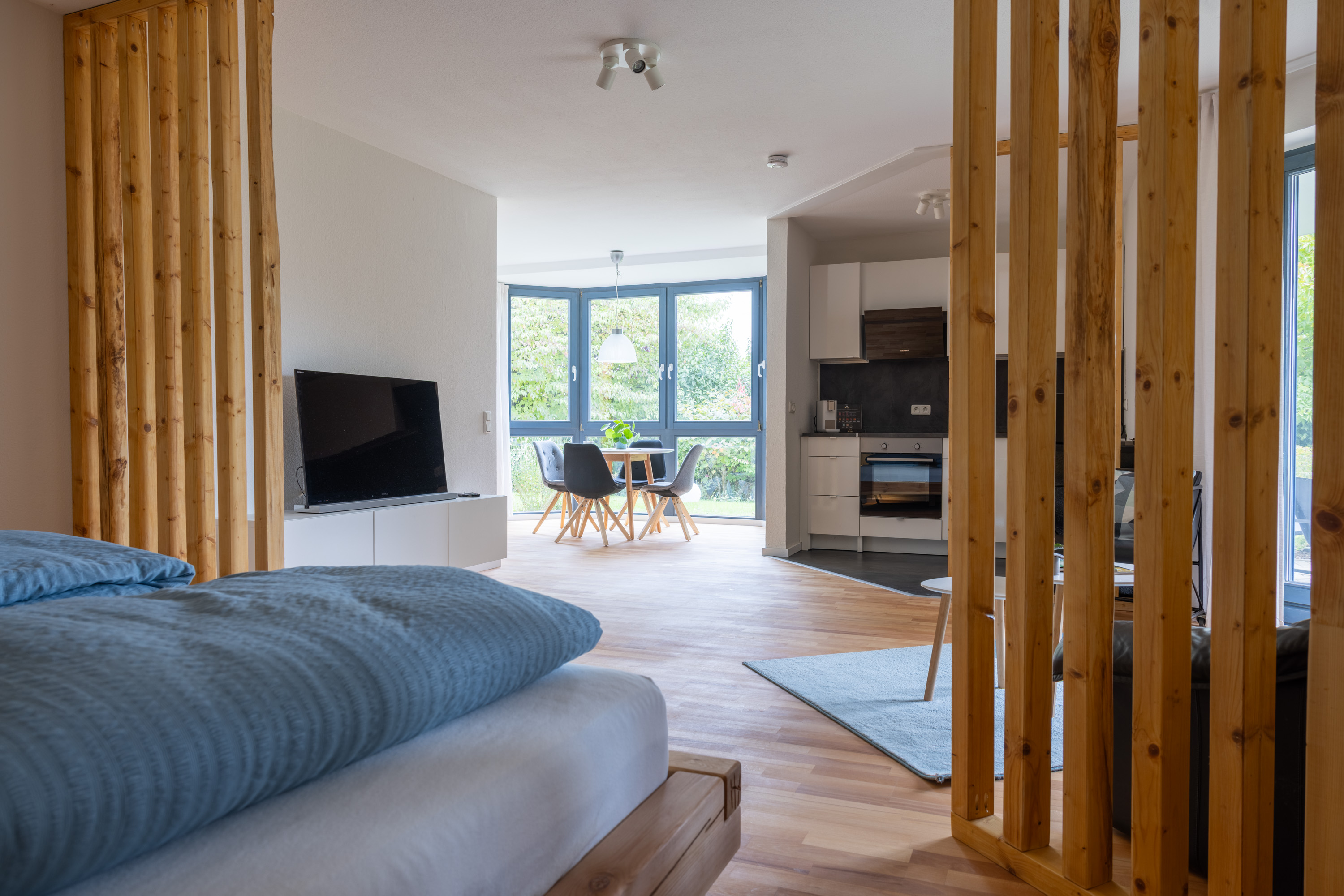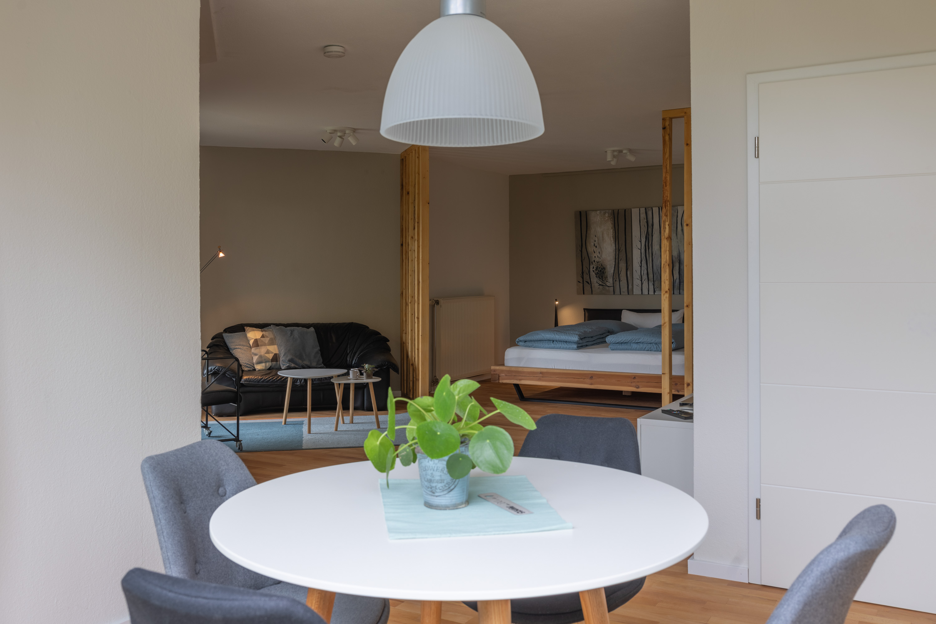 Unsere Ferienwohnung besticht durch ihre offene und zugleich gemütliche Raumgestaltung. Ein großzügiger Wohnraum vereint alles, was du für einen entspannten Aufenthalt brauchst: